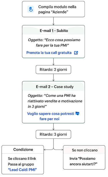 Accompagniamo il tuo team nell’uso pratico degli strumenti AI, per renderlo autonomo e sicuro nella gestione del sistema vendite. Stabiliamo insieme obiettivi S.M.A.R.T ed il percorso per raggiungerli
